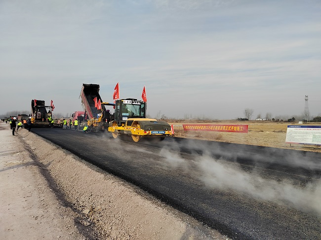 2021年12月31日上午,S325六安马头至长集段新建工程03标项目首段沥青下面层试验段施工正式开始,成为全线首条开始施工的沥青下面层试验段。