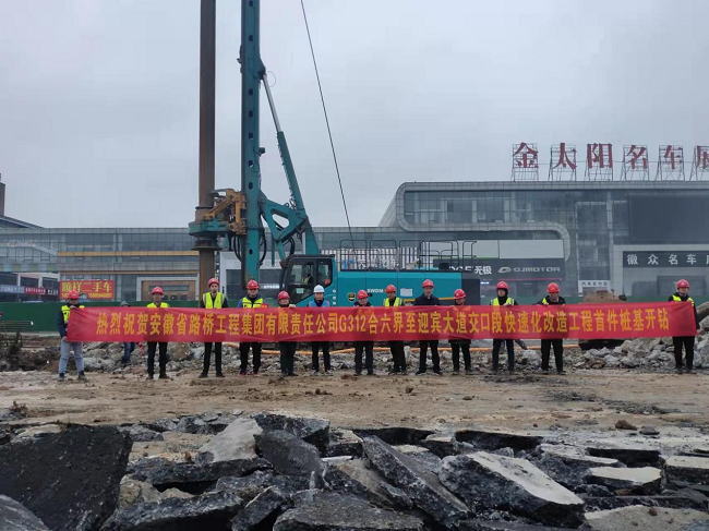 1月6日上午10点58分,G312合六界至迎宾大道交口段快速化改造工程项目迎宾大道高架桥首根桩基顺利开钻,历时近九个小时,于19点30分完成混凝土灌注,拉开了桥梁桩基施工的序幕。