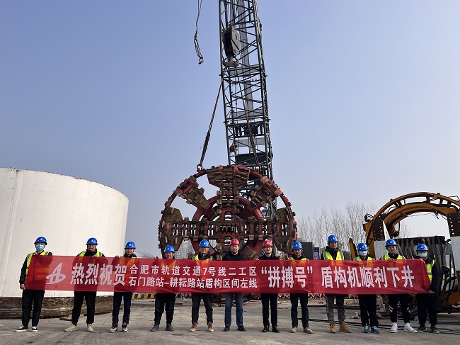 1月18日上午10时18分,安徽路桥集团合肥市轨道交通7号线项目部“拼搏号”盾构机成功下井,标志着合肥市轨道交通7号线一期土建工程二工区石耕区间进入盾构施工阶段。