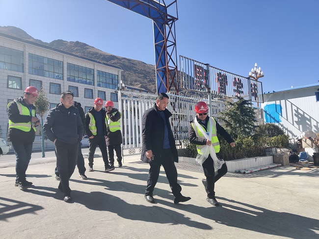 谭修生一行来到项目部,与项目职工亲切交谈,并为他们送上新年慰问品。随后,谭修生一行参观了项目部会议室、职工书屋、食堂等区域,在听取了项目负责人围绕项目概况、建设进度、疫情防控等工作情况的详细汇报后,对项目精细化管理等各项工作表示充分的肯定,并要求项目部全方位做好各项服务保障工作,确保藏历新年期间安全生产。