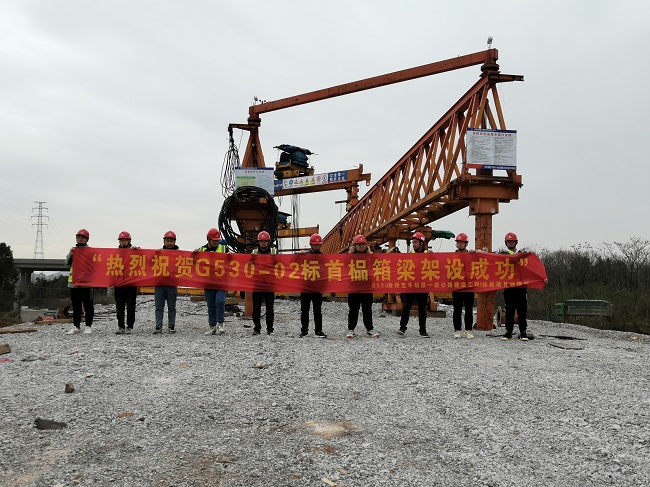 3月6日上午,随着长30m的箱梁从架梁机上平稳安全落位,G530-02标项目首品箱梁成功架设,标志该项目建设取得重要节点突破,为后续施工奠定了坚实基础。