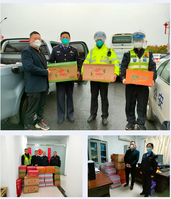 3月31日,马鞍山九华路项目员工分别前往马鞍山市公安局交通警察支队秀山大队、经开区大队,向奋战在抗击疫情一线的执勤人员致以崇高的敬意和诚挚的问候,并为他们送去了矿泉水、面包、方便面等慰问物资,将项目部的爱心和真情传递到疫情防控前线。