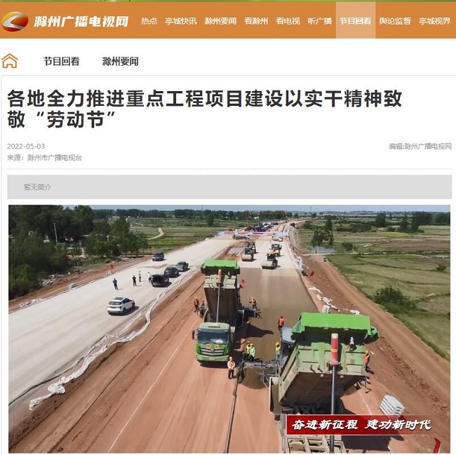 近日,滁州电视台新闻联播栏目组深入明巢高速公路滁州段03标项目现场,以“各地全力推进重点工程项目建设以实干精神致敬‘劳动节’”为主题,重点报道了该项目近200名管理人员、一线工人在五一假期期间坚守岗位,奋战在明巢高速公路滁州段项目工地上,抢工期、抓质量、保安全全力加速推进工程建设的火热场面。