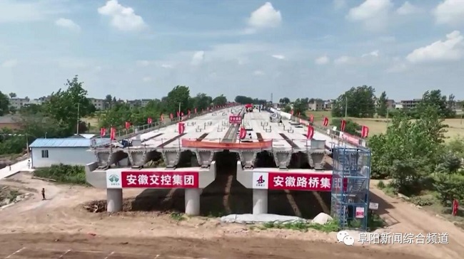 报道指出,6月21日上午10点多,室外气温已达37℃,在安徽路桥集团承建的阜淮高速安徽段03标段建设工程施工现场,一台台大型吊车、挖掘机、运输车忙得不可开交,建设者们冒着高温,抓进度、赶工期,争分夺秒筑大桥。