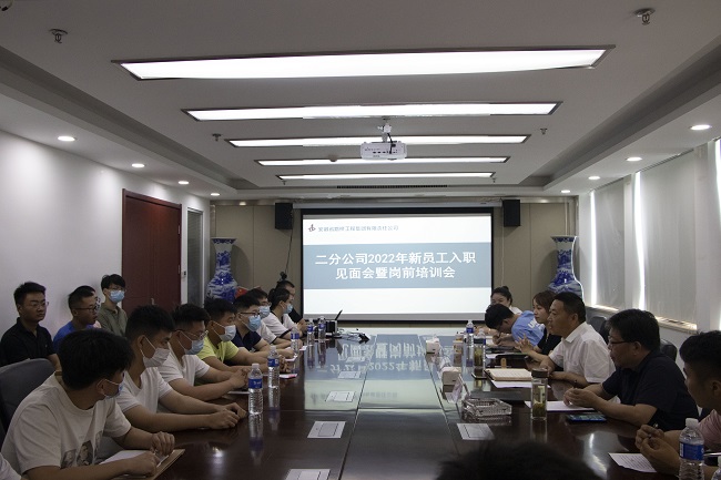 7月8日上午,二分公司举办2022年新员工见面会暨入职培训会,二分公司总经理张立兵、党总支书记刘峰、人力资源部相关负责同志等参加了会议。