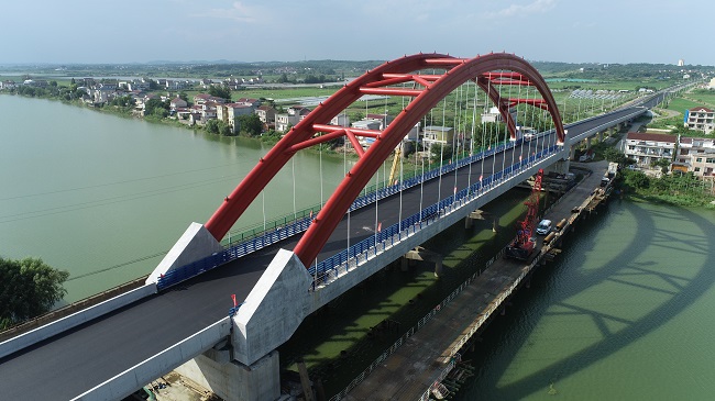 7月12日,G347PPP项目华阳河大桥桥面顺利完成沥青摊铺,大桥正式进入通车目标冲刺阶段。