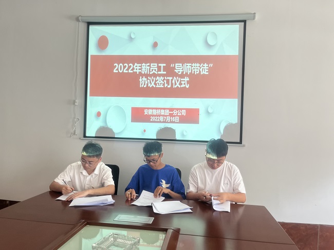 为帮助新员工尽快融入路桥集团这个大家庭,7月16日上午,一分公司在所属项目会议室举行了2022届新员工入职见面会暨“导师带徒”签约仪式。一分公司总经理李文兵、党支部书记刘超等参加会议。