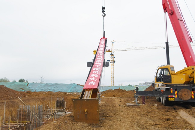 7月26日上午8点18分,安徽建工交通智造基地项目厂房首根钢柱被缓缓吊起,稳稳地安装在基础承台上,标志着交通智造基地项目钢结构主体施工正式拉开序幕。