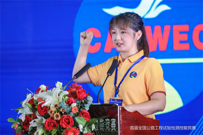 此次技能竞赛是中国交通建设监理协会自成立以来举办的规模最大、影响力最强、水平最高的全国性公路工程试验检测行业技能竞赛,是服务建设交通强国,当好先行的探索,也是展示行业风采,展示行业力量的重要平台。来自全国甲级和专项机构选手报名参赛,经过层层淘汰,笔试环节取前50名选手进入在武汉举办的全国决赛。检测公司参赛队员孙伟代表本次全国参赛选手作大赛发言宣誓。
