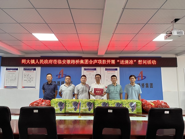 在送达感谢信的同时,同大镇人民政府工作人员还携带西瓜、葡萄等时令水果,开展防暑降温“送清凉”慰问活动,为奋战在施工一线的路桥集团建设者加油鼓劲。