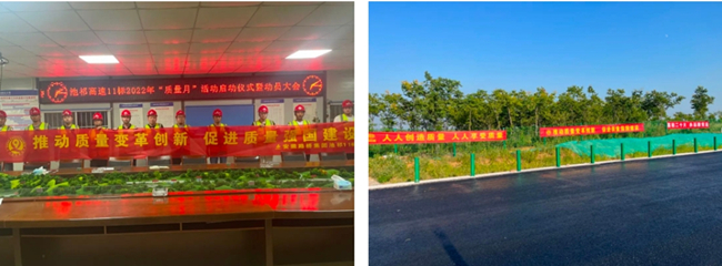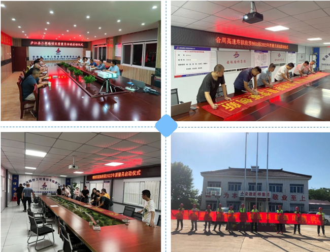 围绕“推动质量变革创新 促进质量强国建设”主题,四分公司结合实际制定质量月活动方案,成立活动领导小组,全面落实质量主体责任。9月1日,各项目部认真开展“质量月”宣誓活动,并在项目驻地、施工现场显著位置悬挂横幅、标语,张贴宣传海报等,营造人人关心质量、追求质量、创造质量、享受质量的良好氛围。