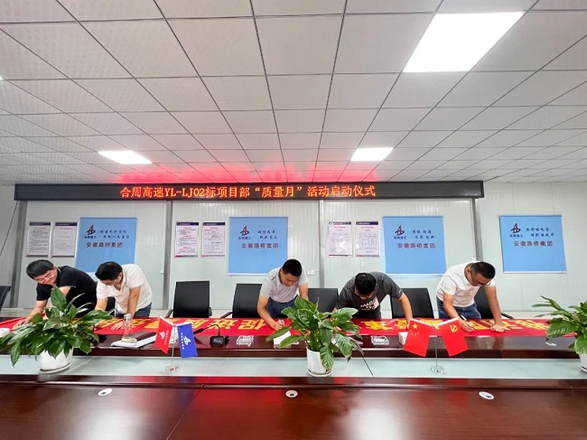 9月1日至9月8日,分公司所属各项目先后举行“质量月”启动仪式。项目负责人号召员工认真落实上级党组织、公司关于质量工作的决策部署及要求,开展项目班子讲质量环节,进一步明确各级质量管理责任和工作内容,结合项目实际情况安排质量管控重点工作。同时,各项目通过条幅、标语等方式广泛开展宣传活动,切实提高全员质量意识,为项目质量管理营造浓厚氛围。