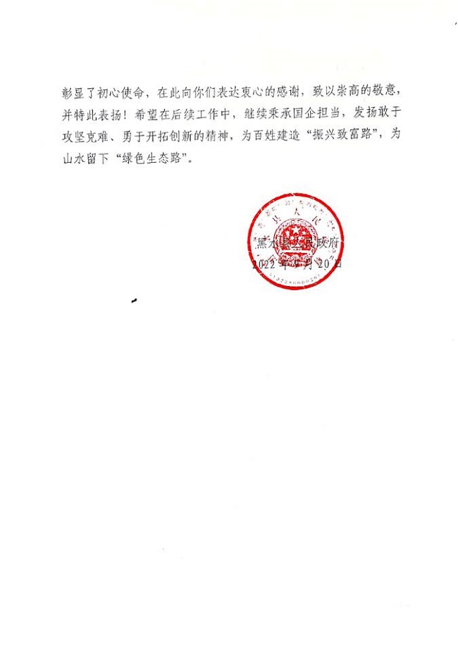 表扬信极大鼓舞了项目部全员的士气、激励了团队的斗志。安徽路桥集团黑水项目表示,在接下来的工作中,继续秉持“建一项工程、交一方朋友、树一座丰碑”的理念,发扬攻坚克难、勇于进取的创新精神,为百姓造“振兴致富路”,为山水留下“绿色生态路”。