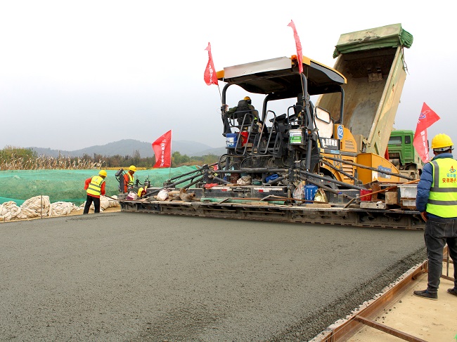 11月4日,经过近8小时不间断作业,路桥集团合安高速柯坦互通项目顺利完成水稳底基层试验段摊铺,项目正式进入路面施工阶段。