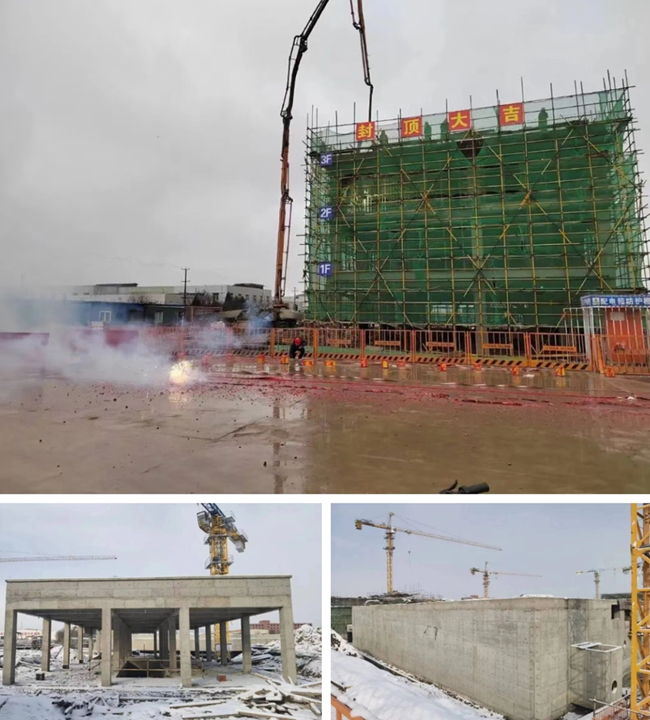 为保障工期节点,应对疫情反复、施工手续难办理、施工图纸不完善等等困难,项目团队整合有限资源,凝心聚力、攻坚克难,快速启动并有效有序推进各项施工工作。系统运用BIM技术进行三维建模,对施工过程中的专业指标进行集成,确保施工质量和施工进度高效可控。在厂区结构施工作业期间,项目部组建了攻坚小组,制定“攻坚图”,“进度表”挂图作战,实行疫情防控“闭环管理”的同时,调整施工分区与施工工序,缓解了疫情对项目施工生产的影响,顺利的完成了节点工期。
