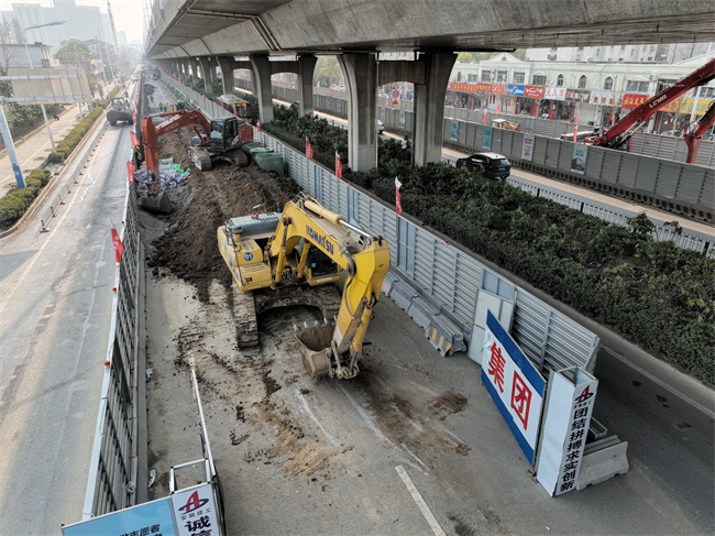 新春佳节刚过,金寨路高架桥绑宽项目现场一片火热景象。伴随着机械设备的轰鸣声,近百名工人在奋力施工雨污水管道、电排及雨水箱涵,全力冲刺节点目标,掀起大干热潮。
