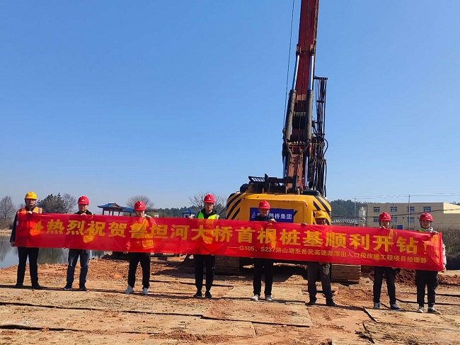 2月27日11时08分,伴随着旋挖钻的轰鸣声,潜山G105项目鲁坦河大桥首根桩顺利开钻,拉开了“开局就是大干,起步就是决战”的序幕。