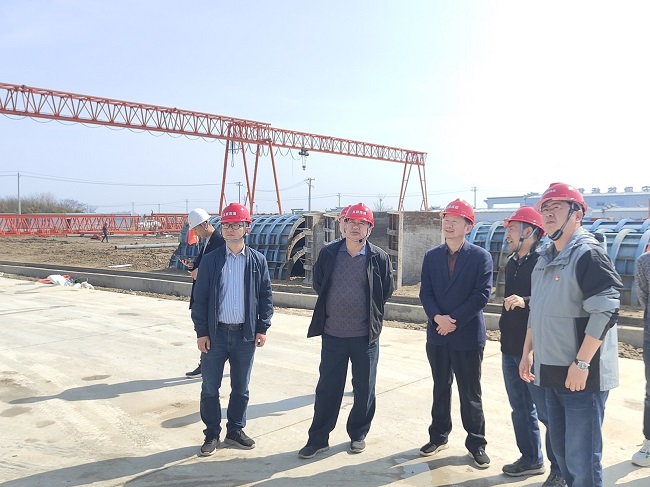 王光银一行实地察看了混凝土拌合站、预制梁场、钢筋加工配送中心等施工现场。对项目施工进度、工程质量、安全文明管理进行了深入了解,听取了项目负责人对项目建设前期的准备工作等方面的汇报。