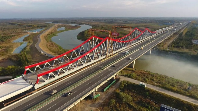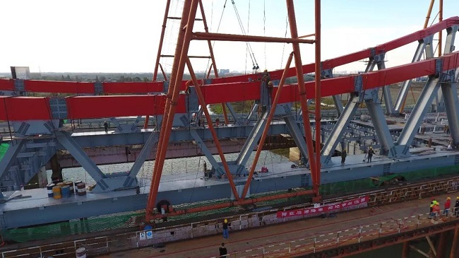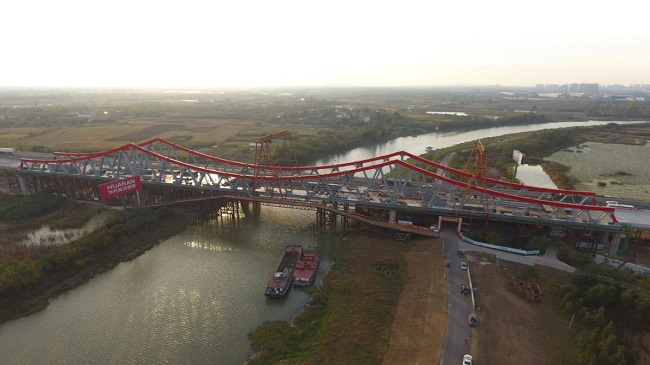 2018年11月2日下15点48分,中派河特大桥最后一个桁架杆件吊装成功,标志着合安改扩建项目中派河特大桥顺利合拢。