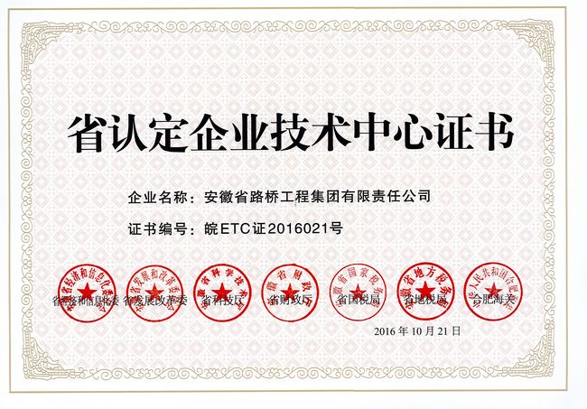省级技术中心认定证书