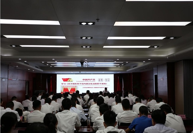 6月30日上午,公司党委书记、董事长盛明宏围绕《关于新形势下党内政治生活若干准则》给公司党员上了一堂坚定理想信念的专题党课。公司领导班子、中层管理人员、公司机关党支部全体党员共计90余人参加学习,集团党委第三主题教育指导组杨盼盼同志出席。