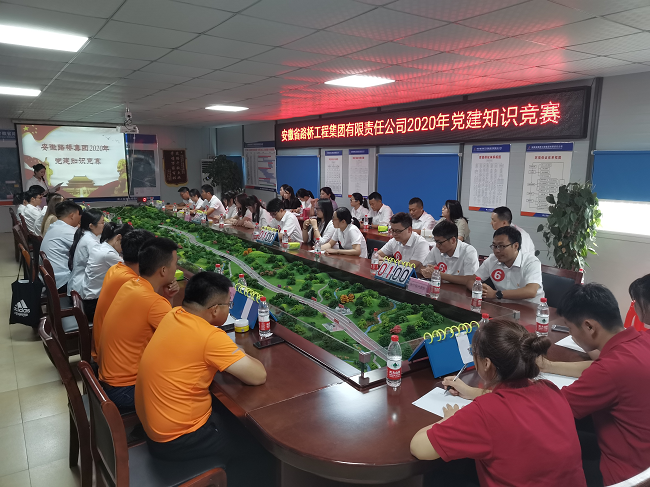 为深入学习贯彻习近平新时代中国特色社会主义思想和党的十九大精神,推进主题教育常态化制度化。8月7日,由公司党委主办、四分公司协办的2020年度党建知识竞赛,在池祁高速11标项目会议室成功举办。5个分公司及设计、检测、设备租赁、公司机关共9支代表队参加比赛,为大家带来一场别开生面的智慧较量和脑力比拼。公司党委委员、纪委书记王胜利出席,机关党群部门及参赛单位党务人员共计50多人为参赛选手加油助威。