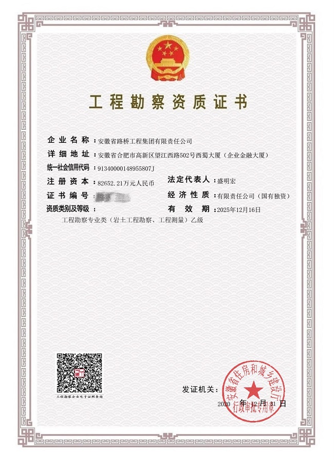 今年,经省住建厅核准,公司获批工程勘察专业类(岩土工程勘察、工程测量)两项乙级资质,再次实现资质范围拓展新突破,填补了公司在工程勘察领域的资质空白。
