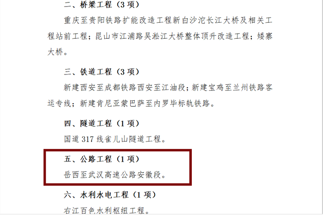 今年,公司继续秉承“诚信为本、敬业至上”的核心价值观,培育精益求精的“徽匠精神”,不断打造“安徽精度”,建设了一批优质工程。公司承建的黄山至祁门高速公路获得国家优质工程奖,岳武高速荣获“詹天佑奖”,蓬莱路、石门路、丹霞路道路改造工程获得“华东杯”,岳武高速、徐明高速、合福铁路铜陵长江公铁大桥公路接线项目获得“黄山杯”殊荣。