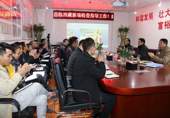 西藏新瑞公司全体人员对集团领导的到来表示热烈欢迎。西藏新瑞公司总工程师、国道219项目负责人张云甫首先对219项目“工人先锋号”创建工作从项目简介、创建准备、组织实施以及创建总结四个方面进行了详细的汇报;随后,西藏新瑞公司党支部书记、总经理王俊文对公司经营、发展情况以及党支部工作进行了详细汇报。