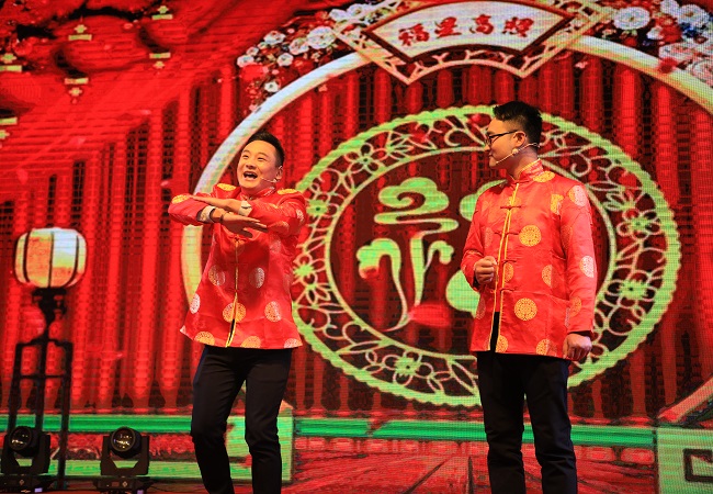 晚会在酷炫的灯光秀和热烈振奋的鼓舞中拉开帷幕。一段满怀激情的相声《劳动号子》道出了建筑工地在党的富民政策引领和关怀下的新生活、新局面;极具时尚、科技感的《活力青春》《光影秀》《魔术》闪耀登场,展现了路桥集团新青年的无限活力和时尚动感;三句半《说说我们的路桥集团》诙谐幽默,引来阵阵叫好声;从撰稿到视频背景再到排练,公司领导亲自把关,机关部门负责人和职工代表合作带来的朗诵《筑路人》道出了公司二十五年的风雨和成长,道出了奉献在路桥一线筑路人的辛苦和辉煌,将晚会氛围推向高潮;舞蹈《风筝误》舞姿轻盈,温婉柔情,极具艺术与观赏;京韵大鼓《重整河山待后生》、合唱《国家》、歌伴舞《不忘初心》气势恢宏,正气凛然,展现出路桥集团人的家国情怀;根据公司项目实际改编的情景剧《工地情歌》时而诙谐幽默时而感人落泪,引起广大职工的强烈共鸣;歌舞短剧《藏汉一家亲 共筑中国梦》带来了西藏新瑞公司的热情祝福和美好祈愿;最后整场晚会在《难忘今宵》的优美乐曲中圆满结束。