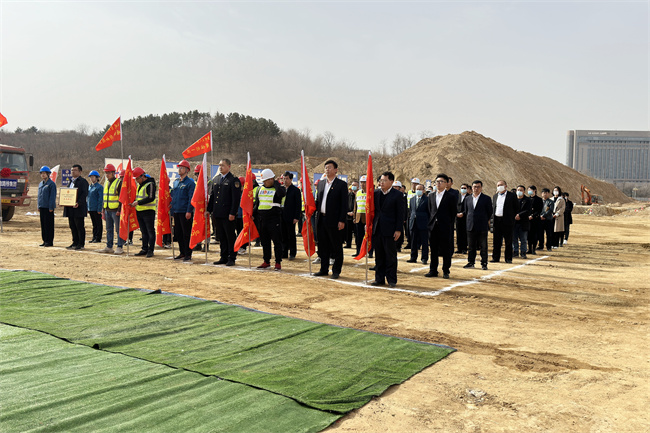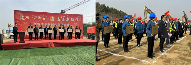 3月25日上午,栖霞市总工会联合多家单位在路桥集团栖霞市新城区基础设施道路管网项目举办栖霞市2023年度创先创优劳动竞赛暨职工安全生产突破年誓师大会。栖霞市委副书记张朋尧、市总工会党组书记李卫国、常务副主席王国栋、市人社局局长刘盛田、市应急管理局局长姜锐、综合执法局局长陈民及栖霞项目项目经理陈中文等参加活动。