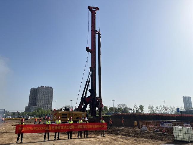 2023年4月17日上午8时8分,伴随旋挖钻的声声轰鸣,S334(长江南路至繁阳大道段)快速化通道改造工程第二标段K11+156下穿繁阳大道桥首根桩基顺利开钻,标志着S334项目正式进入实质性施工阶段。