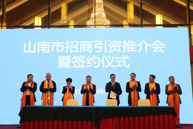 山南市常务副书记、常务副市长、安徽省第八批援藏工作队领队单强,山南市委副秘书长、安徽省第八批援藏工作队临时党委副书记孙科,山南市发改委副主任方晨,建设投资集团党委书记、董事长任杰等领导出席推介会。
