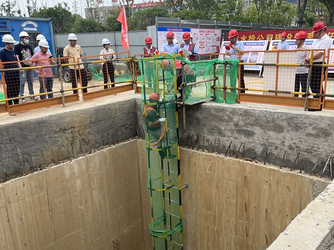 为保持项目有限空间作业安全形势稳定向好,提高有限空间作业人员的专业知识和能力,确保项目安全有序推进。2023年5月16日,建设投资集团城市管网排水改造(二期)工程施工项目连同合肥市水务环境建设投资有限公司、安徽水安西部组团污水处理厂二期工程临时党支部在项目施工现场开展了“对标学习找差距,交流借鉴促提升”为主题的有限空间作业学习活动。水投公司总经理及工程部相关同志,业主及总监代表,安建交建党支部书记,试验检测公司副总经理,项目部全体管理人员等一同参加活动。