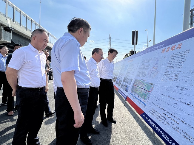 6月9日下午,安徽省交通运输厅党组书记、厅长聂爱国一行赴六安G312快速化改造工程项目考察调研。省交通运输厅有关部门负责同志,六安市委副书记、市长潘东旭,市交通运输局党组书记、局长朱宏,建设投资集团党委书记、董事长任杰等参加。