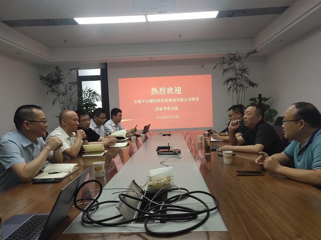 6月16日,安徽平天湖投资控股集团有限公司党委书记、董事长王学敏,池州平天湖双招双引发展有限公司常务副总、池州市金运商务咨询有限公司总经理谢青等一行到建设投资集团考察交流。公司董事、财务总监章兴红,投资管理部经理、四分公司党总支副书记、总经理洪杰等会见了来访客人。