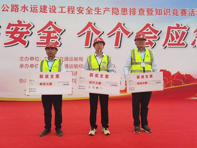 6月19日,在蚌埠市交通运输局举办的“安全生产月”全市公路水运建设工程安全生产隐患排查暨知识竞赛活动中,建设投资集团五蒙高速05标项目喜获团队二等奖,项目安全部部长高亚庆、副部长杨大朋分别荣获个人二等奖和三等奖的优异成绩!