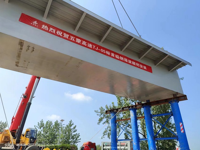 五蒙高速TJ-05标首榀钢箱梁顺利完成架设