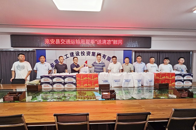 夏日炎炎,骄阳似火。8月5日,来安县交通运输局党组书记、局长徐涛一行赴来六高速04标开展“送清凉”慰问,把关怀送到在烈日下坚守岗位的建设者手中,为他们送上了绿豆、矿泉水、毛巾、防暑药等防暑降温物品。