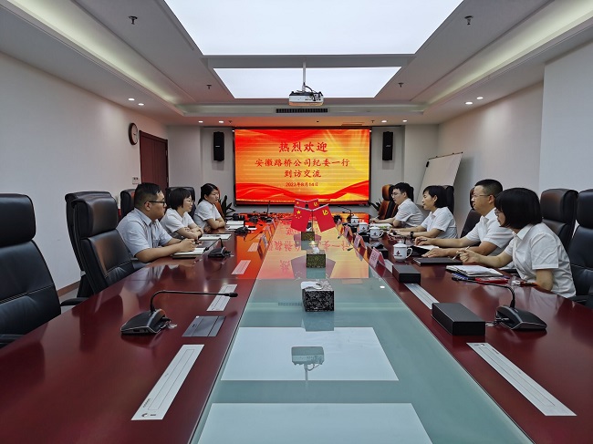8月14日下午,安徽路桥党委委员、纪委书记王鹏一行4人到我公司交流纪检工作,公司党委委员、纪委书记王学梅及纪检室全体人员热情接待。