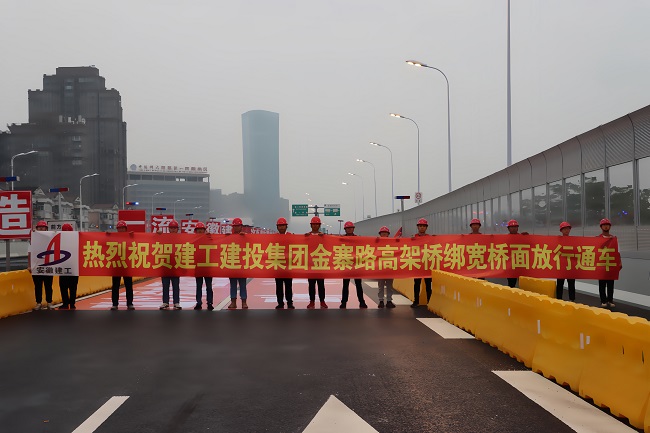 自2023年7月25日建工建投集团金寨路高架桥绑宽项目进入三阶段交通导改封闭施工阶段以来,项目精心组织,主动出击,积极同项目业主方、设计方、监理方、三检方沟通协调,科学部署施工任务,加大人力、机械投入,采取24小时不间断作业,克服现场穿插工序多,施工作业面受限、夏季高温等诸多不利因素,全力奋战,掀起阵阵施工热潮,确保了项目新建段桥梁桥面放行通车目标的顺利实现。