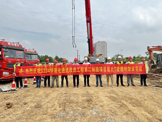 9月2日上午10点,S334(长江南路至繁阳大道段)快速化通道改造工程第二标段项目首片梁板顺利架设,标志着项目进入上部结构施工阶段。