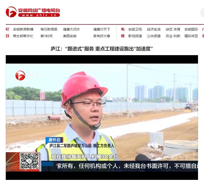 近日,安徽网络广播电视台、庐江县电视台以《“跟进式”服务 重点工程建设跑出“加速度”》为题对池州建投庐江二军路项目建设进行了深入采访与报道。