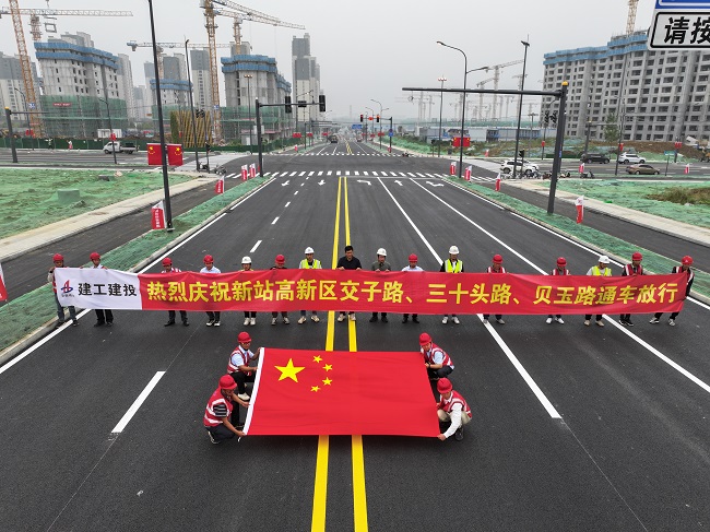 道路再上新,出行更便捷!2023年9月28日,由建工建投集团承建的新站高新区鹤翔湖路等五条路施工项目部分道路通车放行,以实际行动助力新站区高质量发展,向祖国七十四周年华诞献礼。