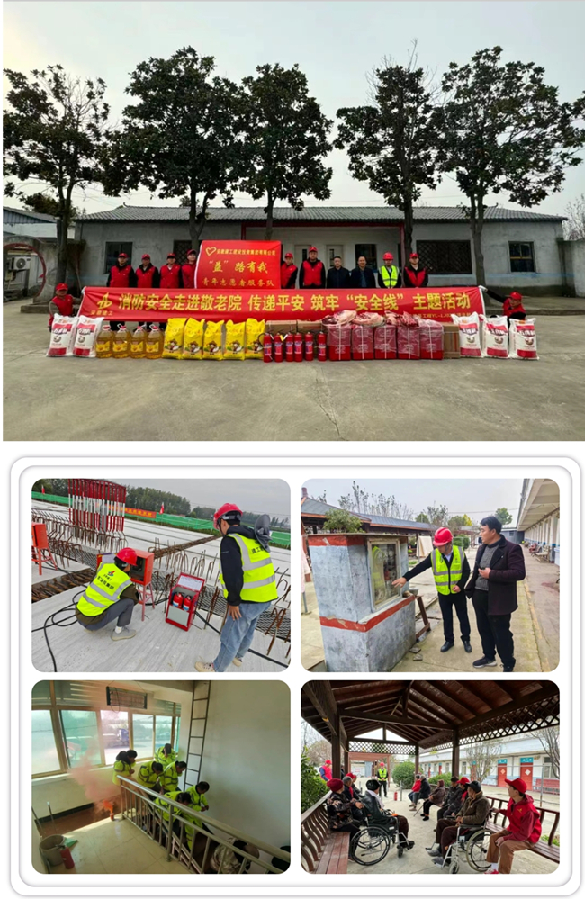 各项目还结合项目实际,有针对性开展形式多样的消防安全专题活动。合周高速颍临段YL-LJ02标项目走进属地张集敬老院开展“消防安全走进敬老院 传递平安筑牢安全线”主题活动,用通俗易懂的语言就如何使用灭火器进行了详细讲解,认真查看了厨房、老人们居住房间等是否存在违规用火用电、是否存在私拉乱接电器线路情况,同时,叮嘱敬老院管理人员要时刻提醒老人注意用火用电安全。徐淮阜高速项目围绕消防安全、燃气消防安全和冬季火灾防控开展安全隐患巡查活动。G36宁洛项目组织开展综合消防疏散演练,强化了与各单位之间的应急联动和协调配合能力。