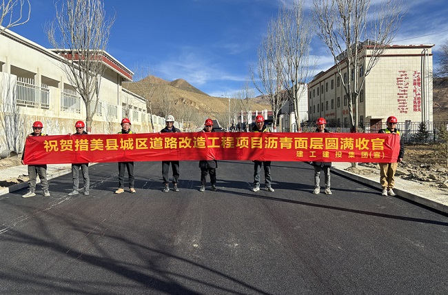 措美县城区道路改造工程项目是安徽援藏的民生工程、民心工程,项目位于海拔4200米的西藏措美县城区,是贯穿措美县城区东南至西北方向的一条主干线,全长2065米,主要建设内容包括缆线管沟工程、给排水工程、路面工程、交安工程等。建设过程中,面对地下管线情况复杂、时间紧、任务重等因素,项目部凝聚上下力量,积极加强与各单位沟通,在确保地下管线安全的前提下保证项目节点可控。与此同时,优化施工组织,每日组织现场主要管理人员召开现场交班会,坚持“现场问题、现场解决”;通过在胶轮压路机上安装自动喷涂防粘装置、改进沥青灌缝工艺等措施简化、优化施工工序,保证工序、工期、质量的同时同步做好安全生产。