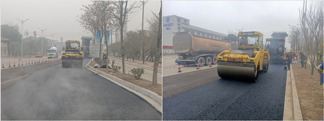 为确保项目首次沥青下面层摊铺工作安全高效优质完成,项目参建人员提前规划,捋清思路。施工前做安全、技术交底,施工时,现场蹲点解决运输、协调等问题,并对现场施工进行详细记录,确保各项工序无缝无误衔接。截至目前,已完成主干道浙锻路沥青摊1.2KM,预计本月完成全线沥青下面层摊铺任务。