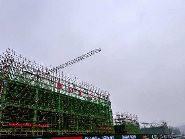 项目自开工以来,项目管理团队面对新业态、新挑战,乘风破浪、奋勇前进,针对复杂的工程地质条件、新近倾填土石方成桩难等不利因素与困难,迅速组织7台旋挖钻,克服技术难题,人歇机不歇、24小时推进桩基施工,30天完成桩基进度节点,至2023年11月18日各工区陆续出正负零。在主体结构施工过程中,项目管理团队强化协调、科学组织,加大人机械投入,800名各类专业建筑工人和各种机械设备紧密配合快速推进施工进度,15栋厂房拔地而起,圆满完成了首批楼栋结构封顶的重大节点目标。