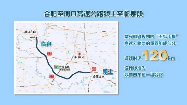合肥至周口高速公路颍上至临泉段是安徽省规划的“五纵十横”高速公路网的重要组成部分,设计时速120km,设计标准为双向四车道一级公路。