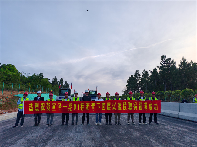 宣泾高速是我省首条采用无人摊压技术进行施工的高速公路项目,本次施工的沥青下面层试验段桩号为K6+220-K6+520,长300m,设计宽11.63m及厚度8cm。该试验段的顺利完成,为宣泾高速01标后期进行规模化无人摊压施工沥青路面打下了坚实的基础。